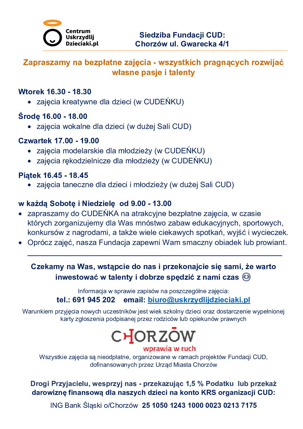 Centrum Uskrzydlijdzieciaki.pl ul. Gwarecka 4/1 41 – 500 Chorzów woj. śląskie, Polska